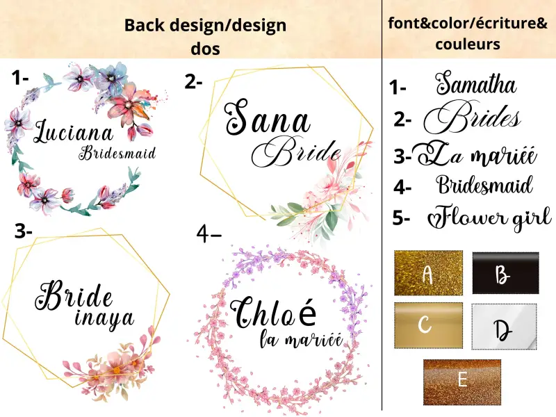 veulliez nous laisser un message avec le numero du design choisi pour le dos et le prénom a écrire dessus svp.